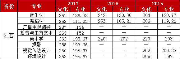 注:攝影專業(yè)認可江西省美術(shù)與設計類統(tǒng)考成績 藝術(shù)類近三年錄取分數(shù)情況