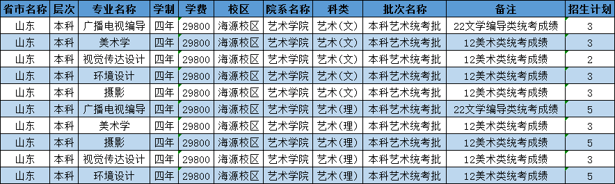 藝術(shù)類招生計劃