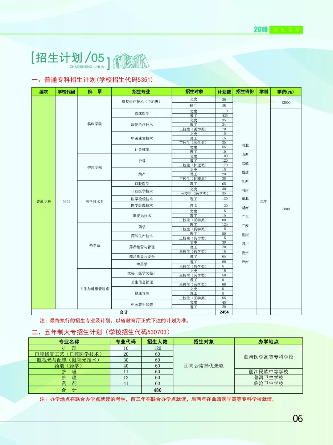 曲靖醫(yī)學高等專科學校2018年招生簡章
