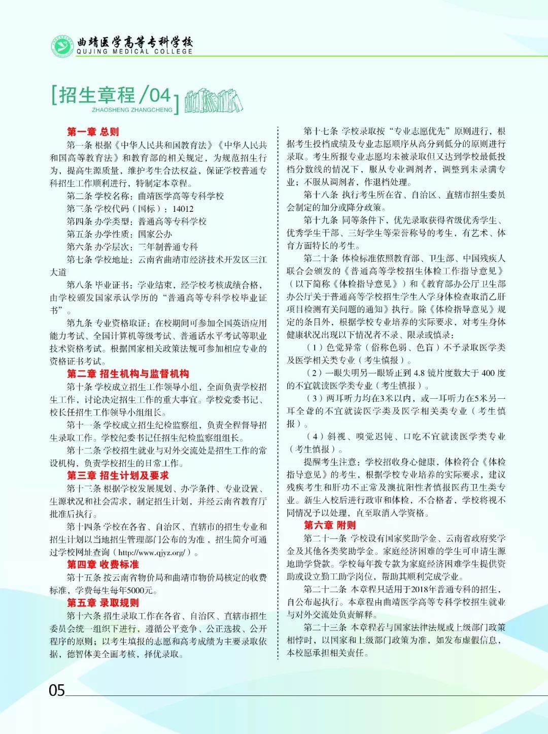 2024年曲靖醫(yī)學(xué)高等??茖W(xué)校招生章程