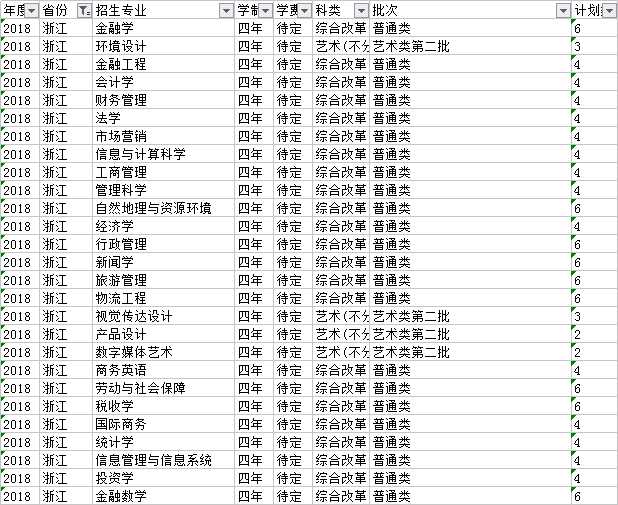 云南財(cái)經(jīng)大學(xué)2018年本科分省招生計(jì)劃表(浙江)
