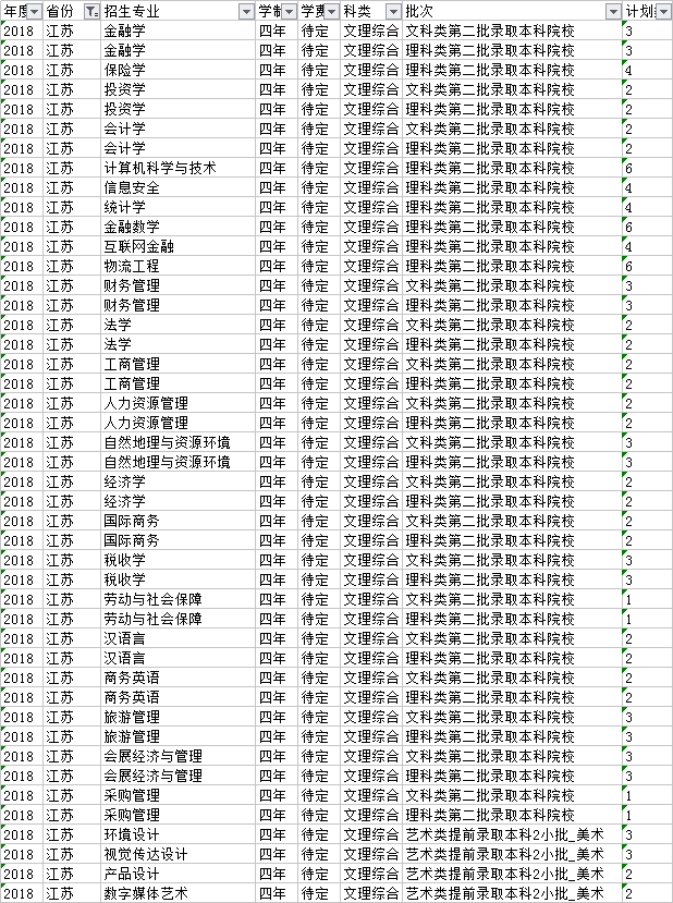 云南財(cái)經(jīng)大學(xué)2018年本科分省招生計(jì)劃表(江蘇)