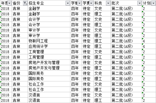 云南財經(jīng)大學(xué)2018年本科分省招生計劃表(吉林)