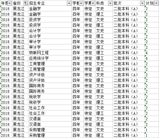 云南財經(jīng)大學(xué)2018年本科分省招生計劃表(黑龍江)