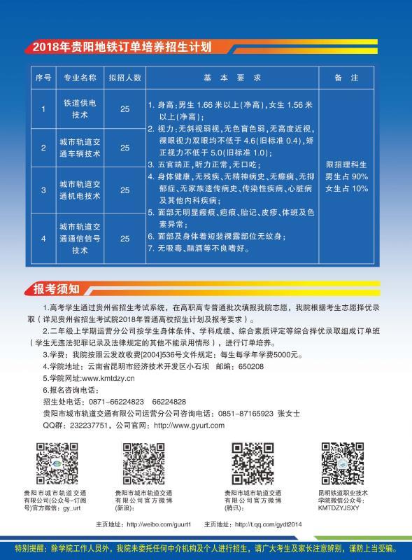 昆明鐵道職業(yè)技術(shù)學(xué)院貴陽地鐵2018年訂單培養(yǎng)招生簡章
