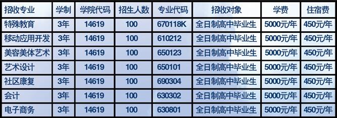 學(xué)院堅持規(guī)模、結(jié)構(gòu)、質(zhì)量、效益協(xié)調(diào)發(fā)展的原則,辦學(xué)4年后全日制在校生規(guī)模達(dá)2000人。建院初期擬設(shè)3系2部,2018年度開辦適合學(xué)院發(fā)展,且已具備實驗實訓(xùn)和師資隊伍等辦學(xué)條件的7個專業(yè)為:特殊教育、移動應(yīng)用開發(fā)、美容美體藝術(shù)、藝術(shù)設(shè)計、社區(qū)康復(fù)、會計、電子商務(wù)。