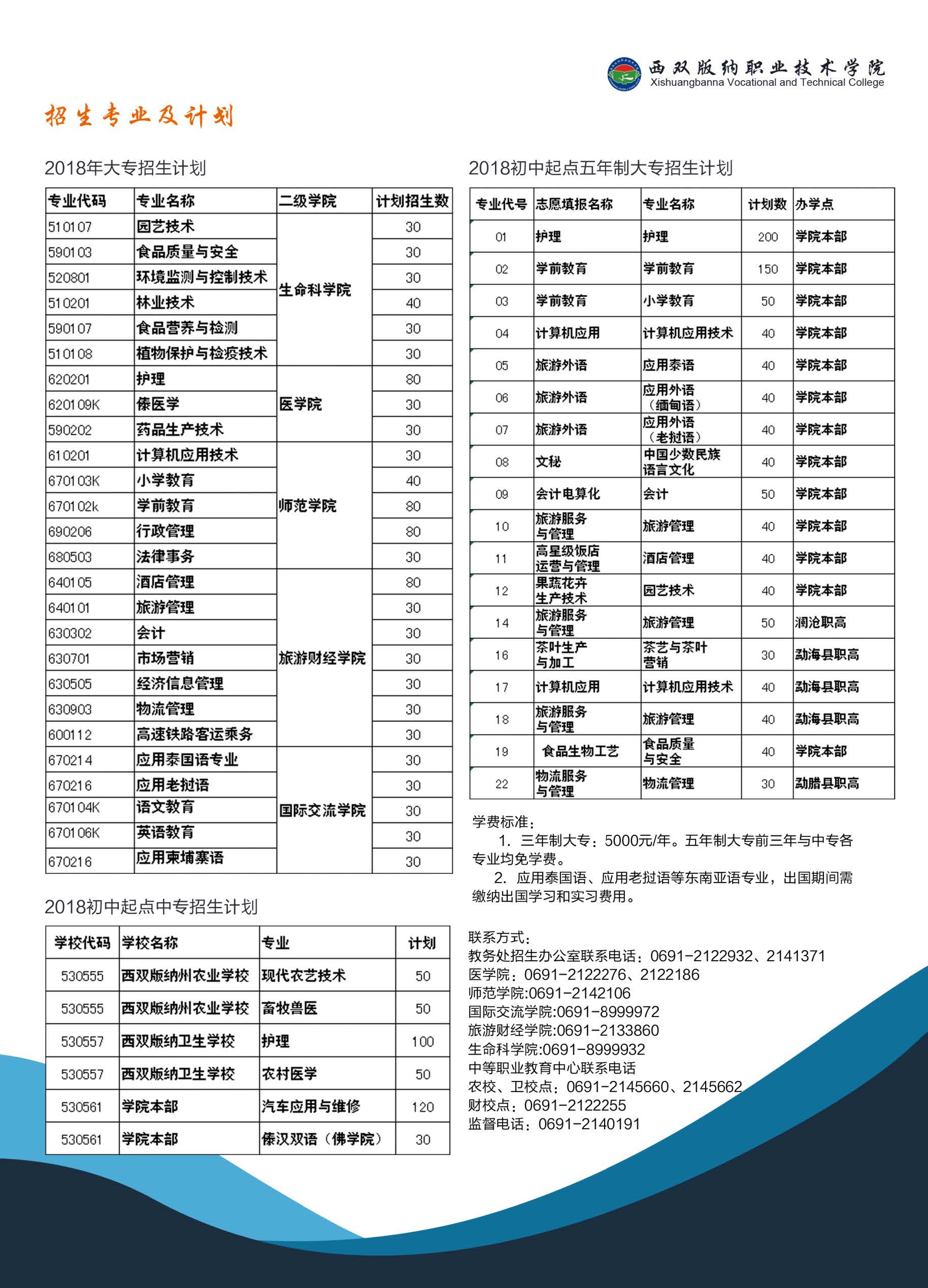 西雙版納職業(yè)技術學院2018年招生專業(yè)及計劃