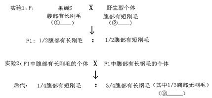 (3)根據(jù)果蠅③和果蠅S基因型的差異,解釋導(dǎo)致前者胸部無剛毛、后者胸部有剛毛的原因: 。
