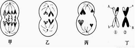 (2)從可遺傳的變異來源看,甲圖中若1與2或1與4的片段發(fā)生交換,則前者屬 ,后者屬于 。乙圖中發(fā)生的變異屬于 ;A圖中DNA含量對應(yīng)為4的細(xì)胞可以是甲、乙、丙中的 細(xì)胞。