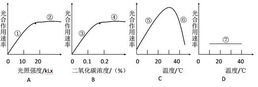 (5)D圖中的曲線⑦表示無論溫度如何變化,光合作用速率都很低,可能的原因是 。