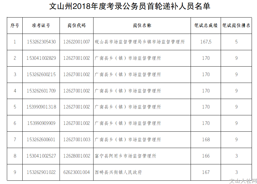 2018年6月26日,文山州2018年度考錄公務(wù)員資格復(fù)審工作已結(jié)束,現(xiàn)將資格復(fù)審不合格人員名單和首輪遞補人員名單公布,并將資格復(fù)審相關(guān)事宜通知如下: