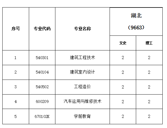 云南城市建設(shè)職業(yè)學(xué)院2018年高職(專科)湖北分專業(yè)計(jì)劃表