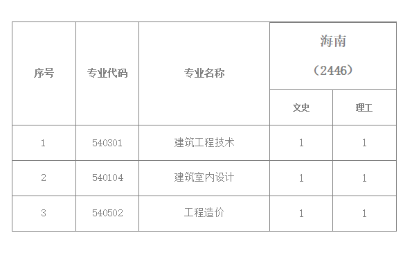 云南城市建設(shè)職業(yè)學(xué)院2018年高職(專科)海南分專業(yè)計(jì)劃表