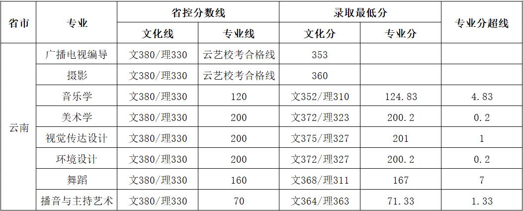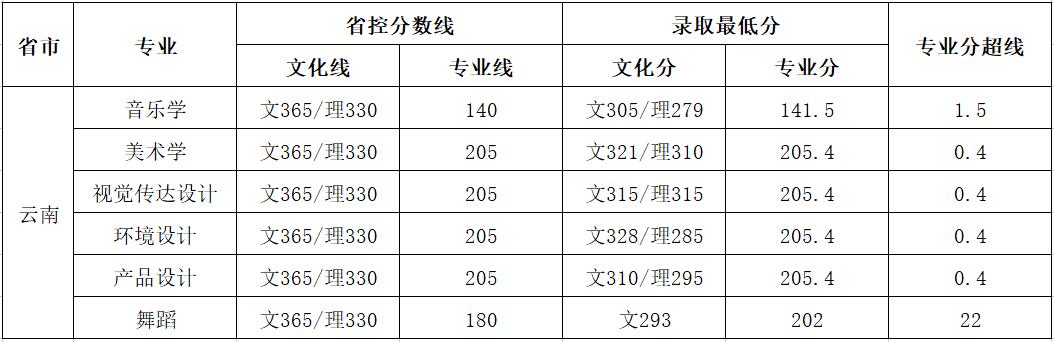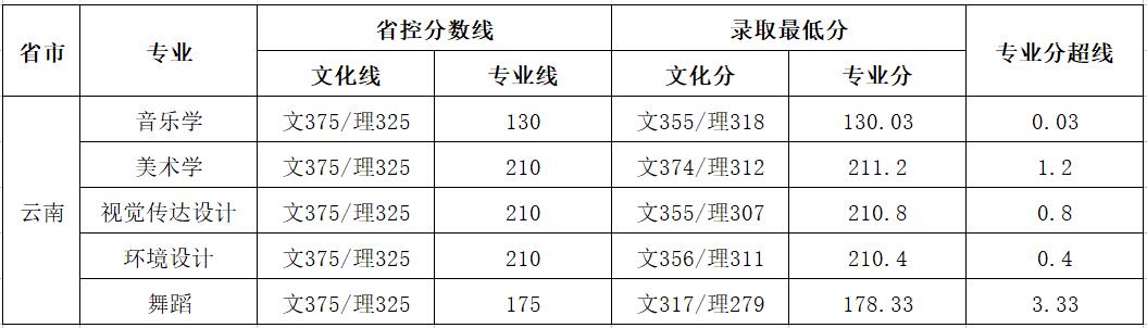 云南師范大學(xué)商學(xué)院2015-2017年藝術(shù)類分省錄取最低分(云南)