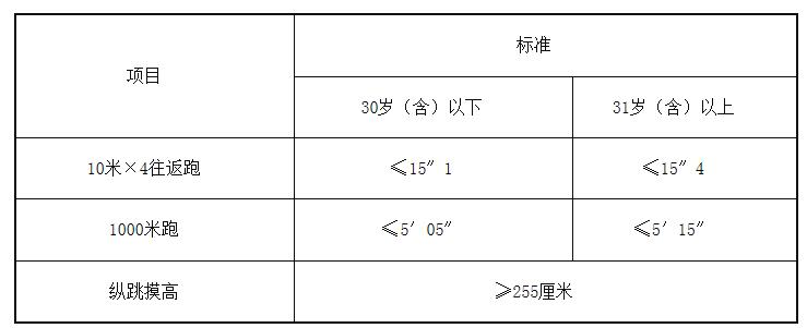 體能測評參照公安部《關(guān)于印發(fā)公安機關(guān)錄用人民警察體能測評項目和標(biāo)準(zhǔn)(暫行)的通知》及其所附標(biāo)準(zhǔn)開展。