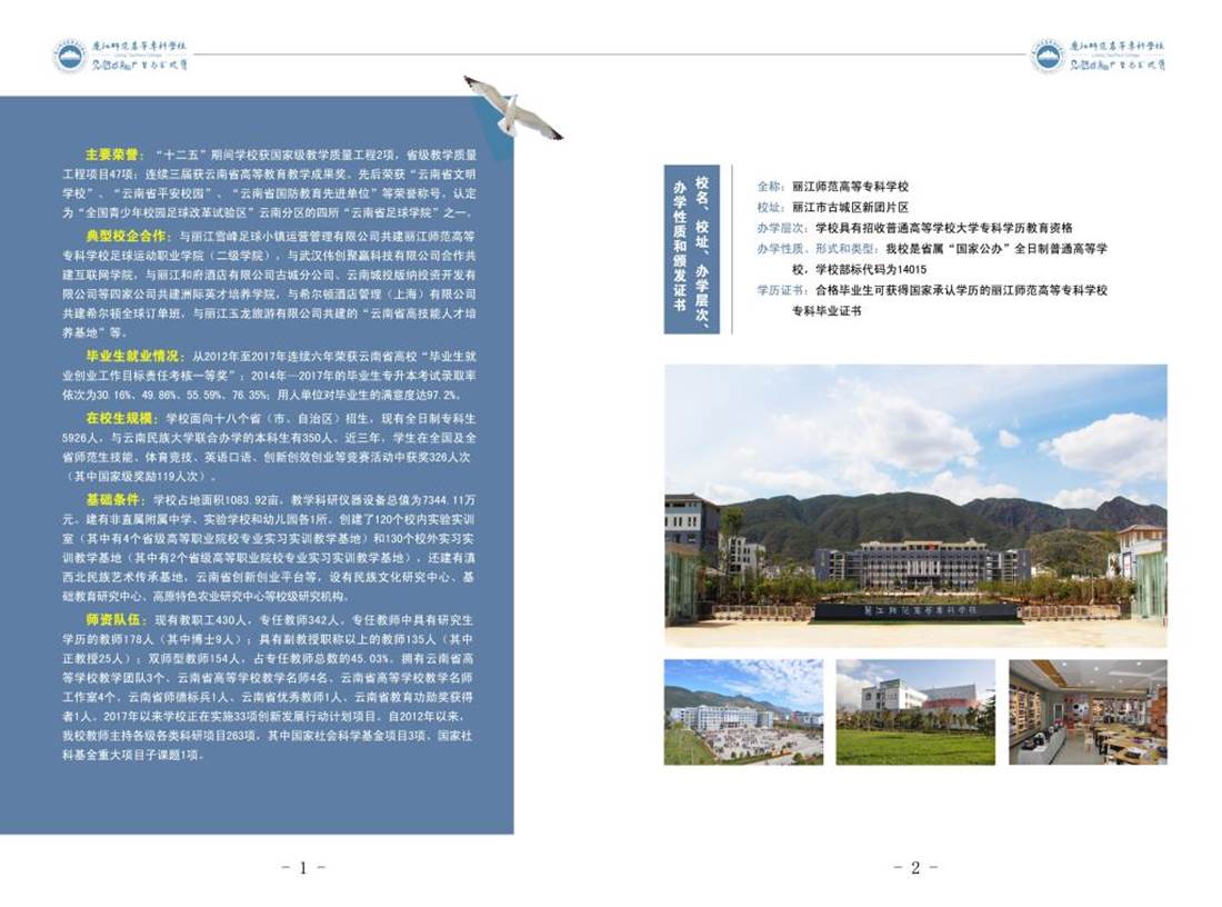 麗江師范高等??茖W(xué)校2018年招生簡章