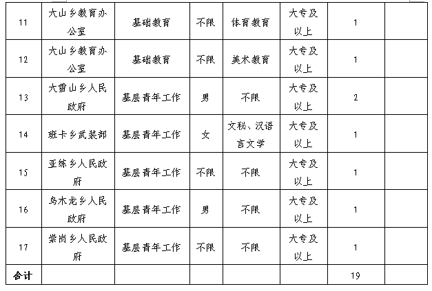 根據(jù)《中共中央辦公廳國務(wù)院辦公廳印發(fā)〈關(guān)于進一步引導(dǎo)和鼓勵高校畢業(yè)生到基層工作的意見〉的通知》(中辦發(fā)﹝2016﹞79號)、《共青團中央教育部財政部人力資源和社會保障部關(guān)于印發(fā)〈2018-2019年度大學(xué)生志愿服務(wù)西部計劃實施方案〉的通知》(中青聯(lián)發(fā)〔2018〕3號)、《共青團云南省委云南省教育廳云南省財政廳云南省人力資源和社會保障廳轉(zhuǎn)發(fā)〈關(guān)于進一步加強云南省大學(xué)生志愿服務(wù)西部計劃工作的意見〉的通知》(云青聯(lián)〔2016〕11號)和省項目辦《關(guān)于開展2018-2019年度云南省大學(xué)生志愿服務(wù)西部計劃省級地方項目的通知》(云志項辦通〔2018〕4號)等文件要求及團市委相關(guān)要求,經(jīng)縣項目辦積極爭取,今年我縣將繼續(xù)實施2018—2019年度云南省大學(xué)生志愿服務(wù)西部計劃省級地方項目。現(xiàn)將招募事項公告如下: