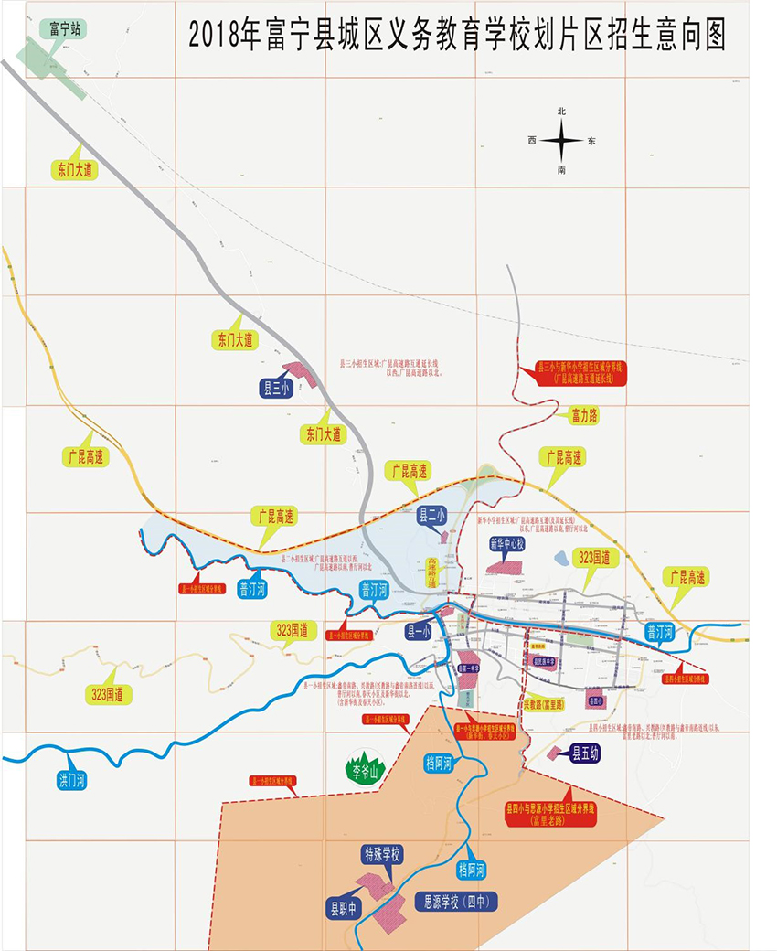 附件:富寧縣城區(qū)義務(wù)教育劃片區(qū)招生意向圖