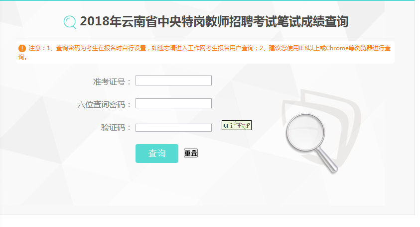 2018年云南省特崗教師筆試成績(jī)查詢?nèi)肟?/h1>