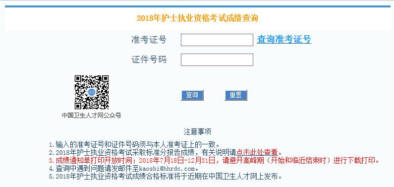 2018年全國護(hù)士執(zhí)業(yè)資格考試成績查詢