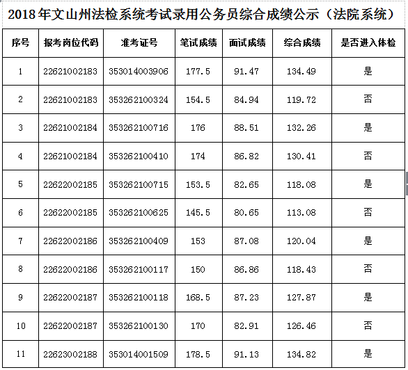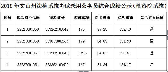 2018年文山州法檢系統(tǒng)考試錄用公務(wù)員綜合成績公示