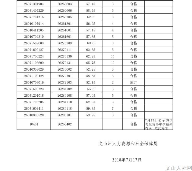 2018年文山州事業(yè)單位招聘工作人員資格復(fù)審結(jié)果