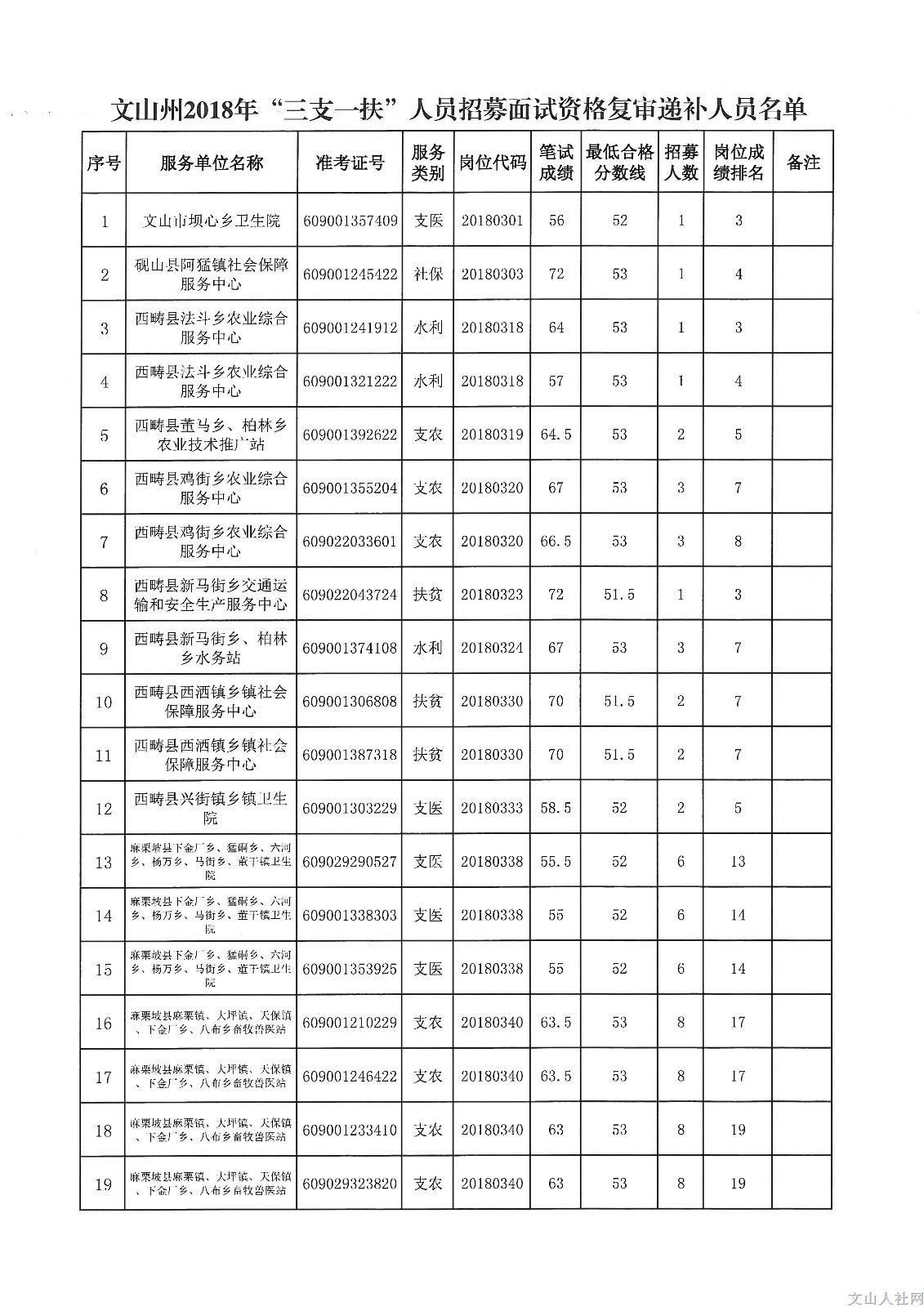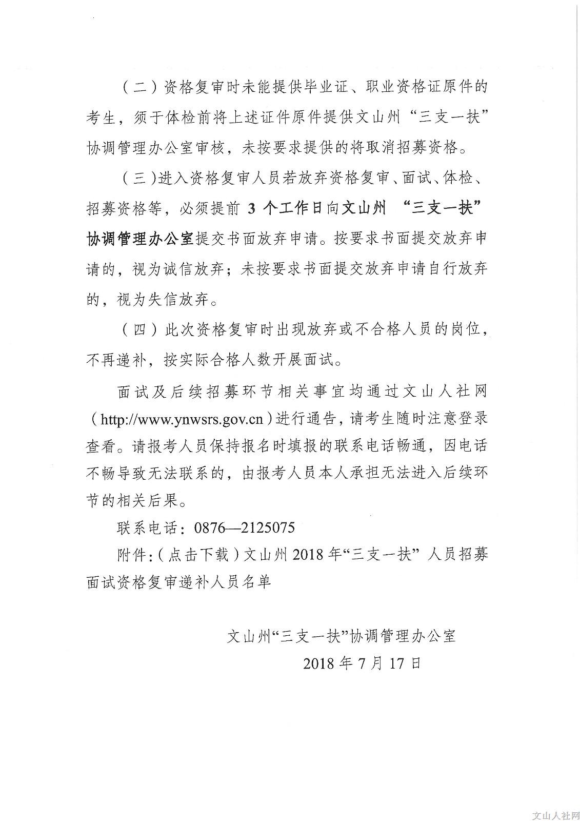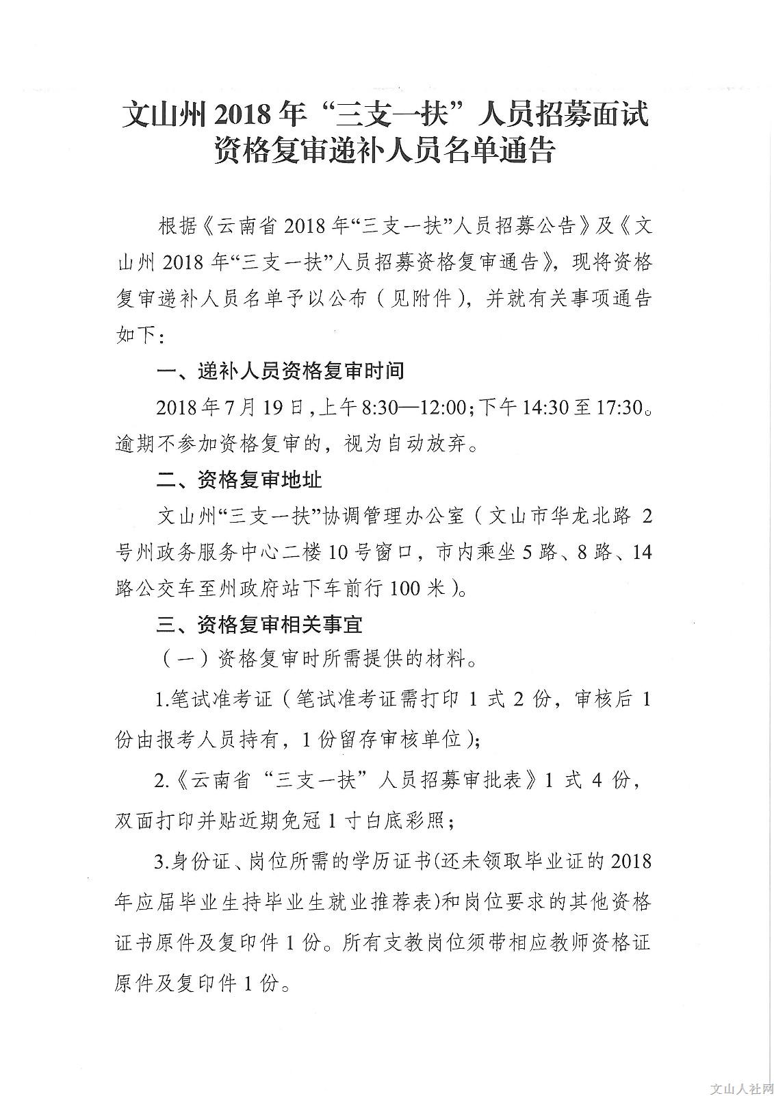 文山州2018年“三支一扶”人員招募面試資格復(fù)審遞補(bǔ)人員名單通告