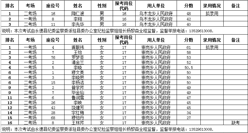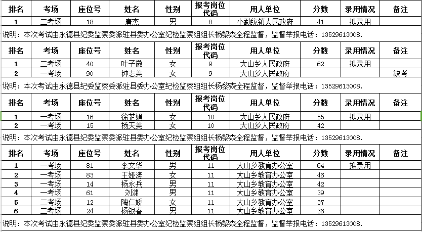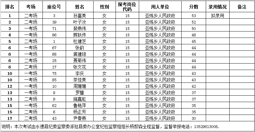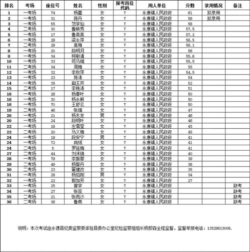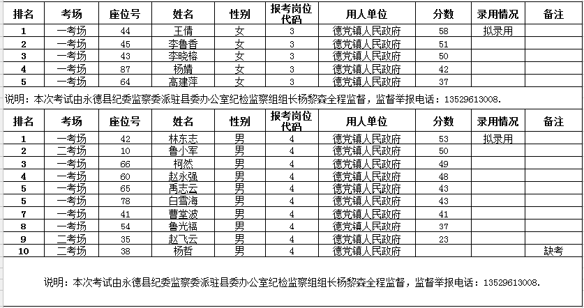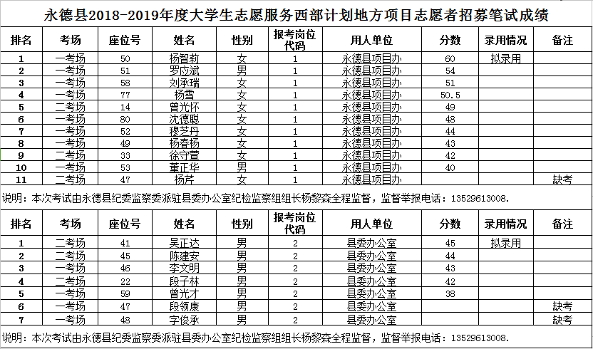 臨滄市永德縣2018-2019年大學生西部志愿者招募筆試成績