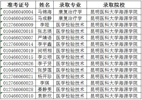 昆明醫(yī)科大學(xué)海源學(xué)院錄取名單(第三次志愿征集)