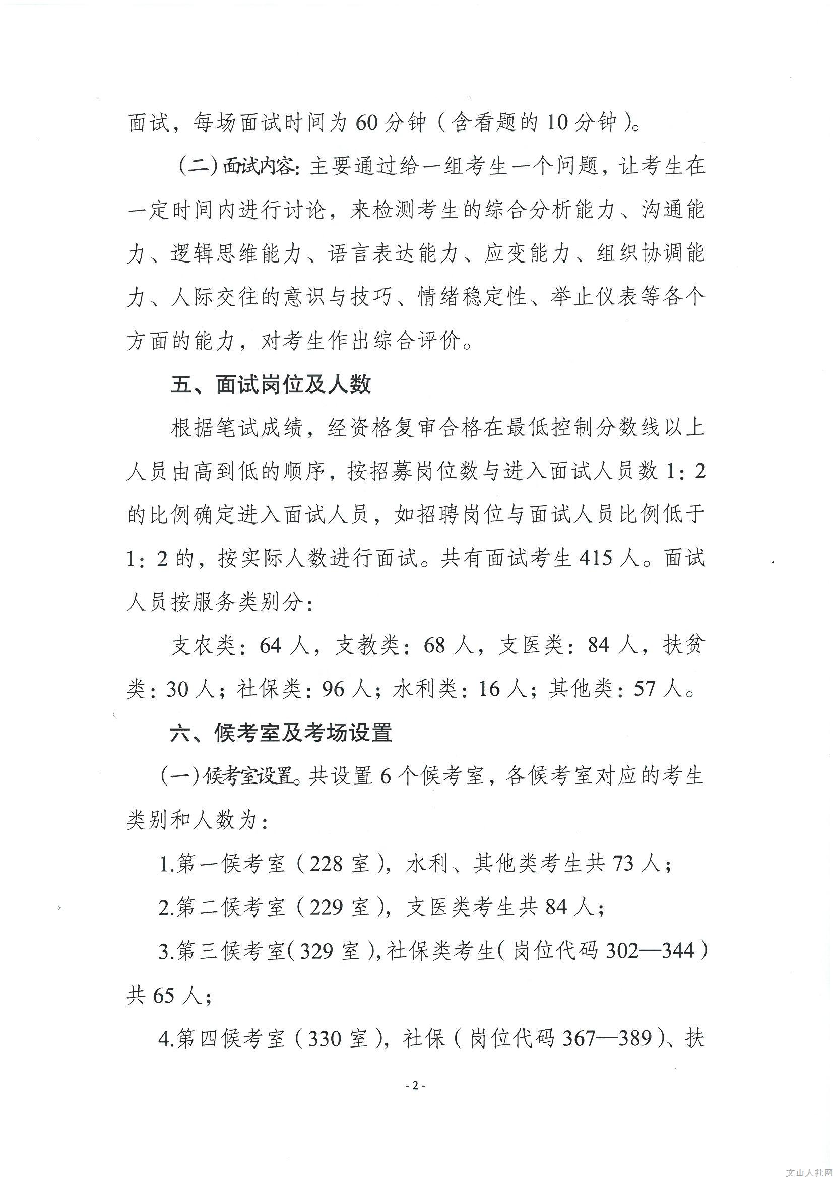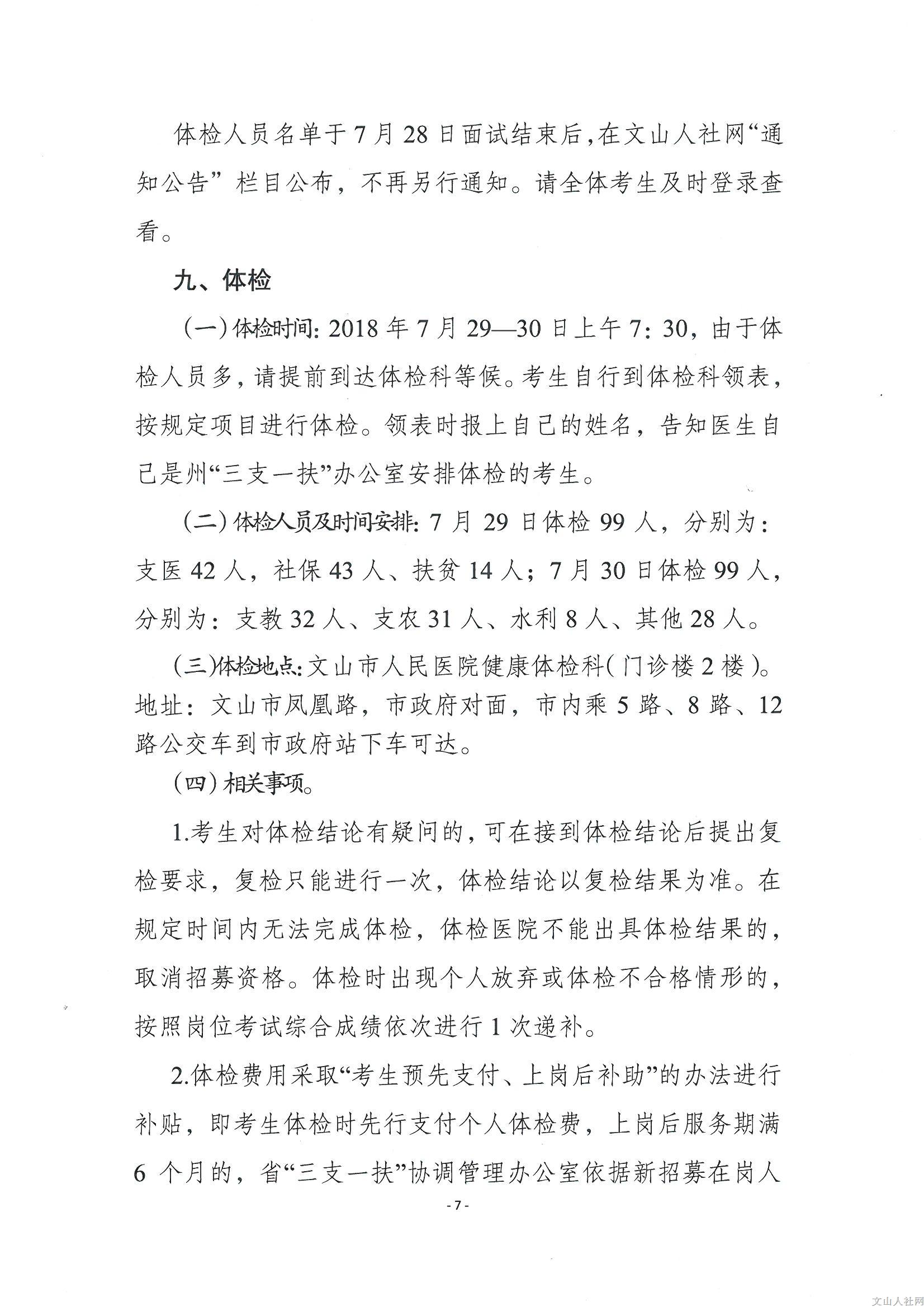文山州2018年三支一扶招募面試及體檢通告