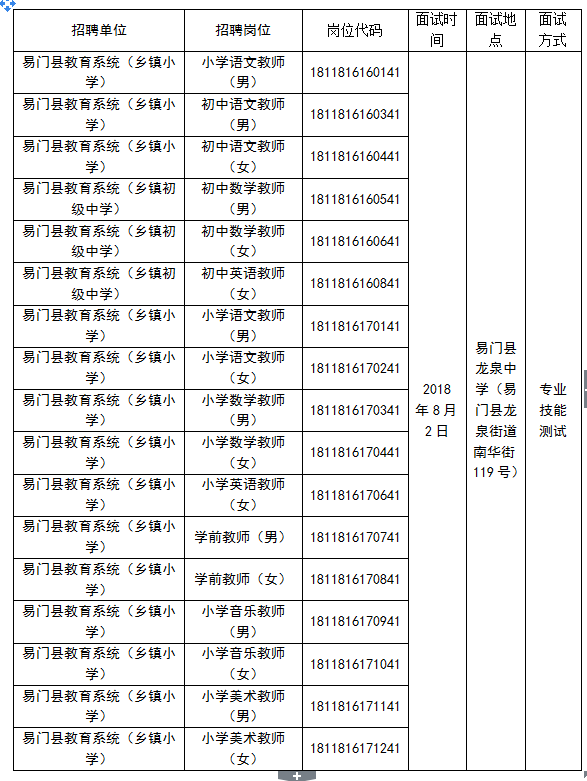 2018年易門縣事業(yè)單位招聘各崗位面試時間、地點和面試方式(教師招聘崗位)