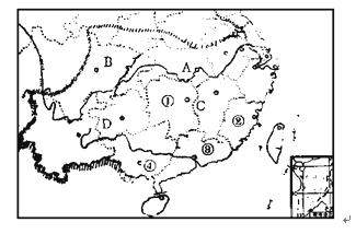 (1)據(jù)報道,2003年12月9日,黃河內蒙古河段累計封凍230千米,圖中字母A、B、C、D、E代表的五條河流中,表示黃河的字母代號是 。與黃河一樣有結冰期的是B河和A河;在這五條河流中,汛期最長的河流是 河;圖中內流區(qū)域和外流區(qū)域的分界線與 mm等降水量線相似。