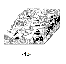 圖2為某種地貌發(fā)育示意圖。讀圖完成8~9題。