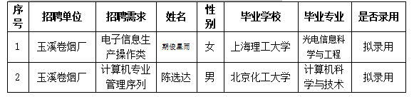 公示時間:2018年7月28日至2018年8月3日 公示期間,對擬錄用人員名單有異議的,可實名向紅塔集團紀檢監(jiān)察部反映。