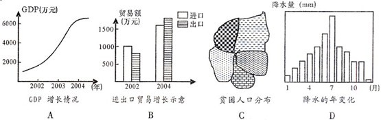 15.下列四圖,是同學(xué)們?yōu)榧亦l(xiāng)所作的自然、社會經(jīng)濟(jì)方面的資料分析圖,其中只適宜用GIS數(shù)據(jù)庫軟件制作的是