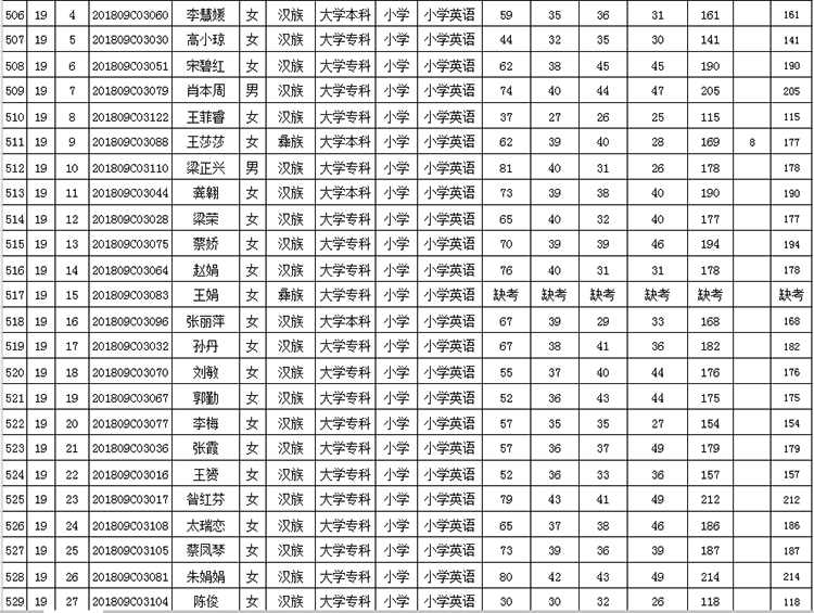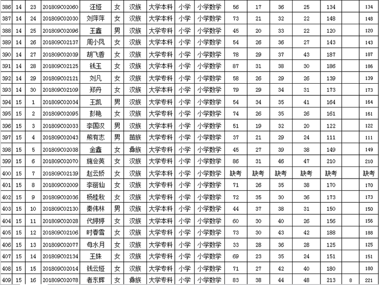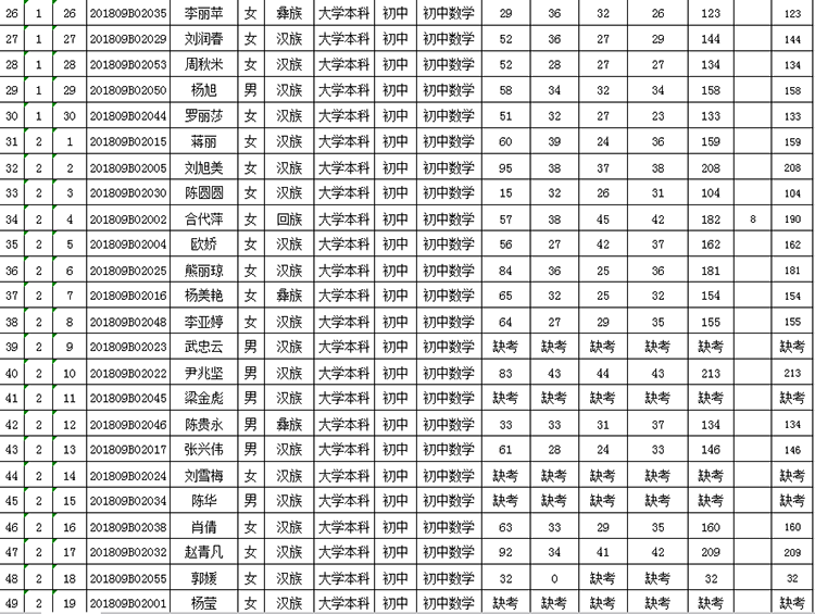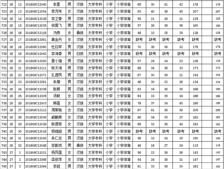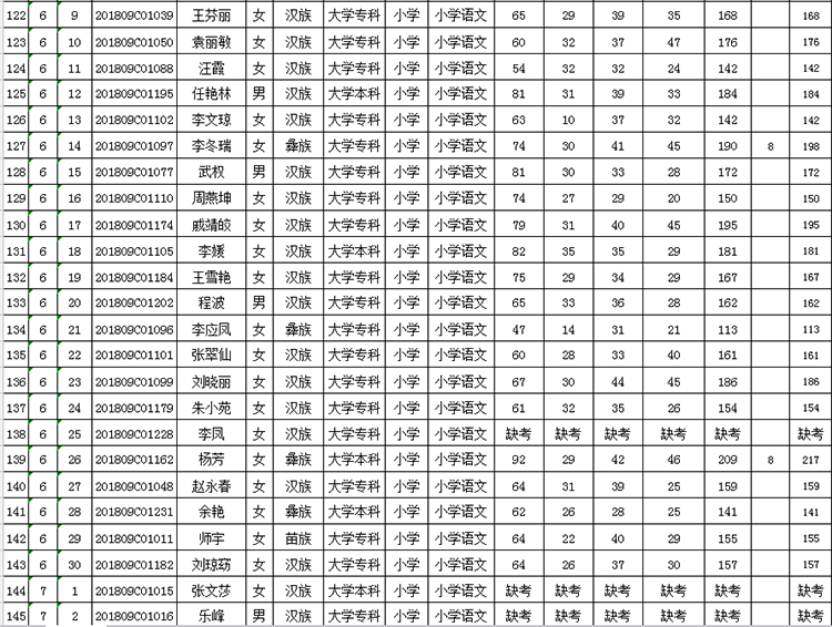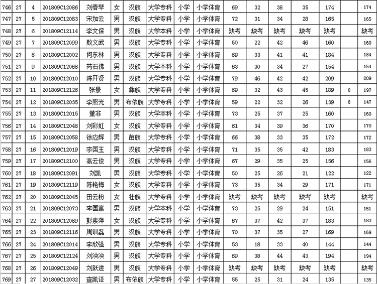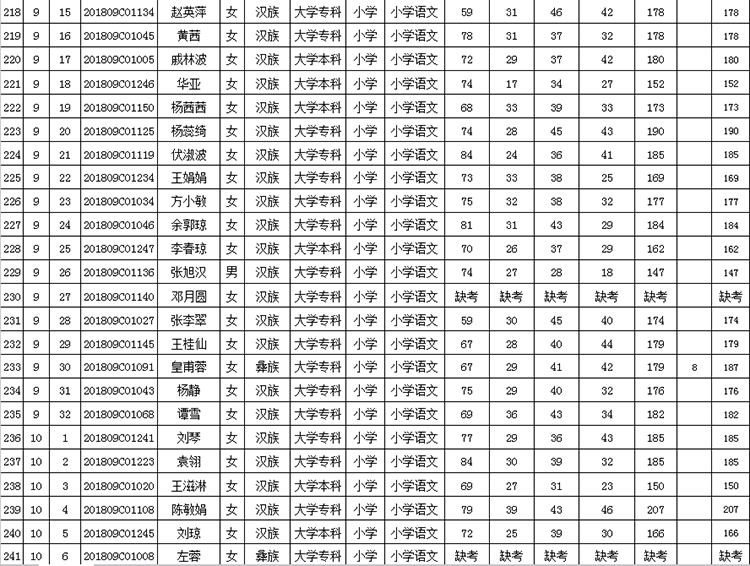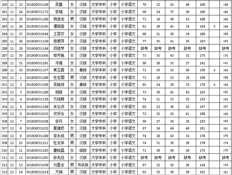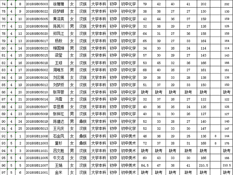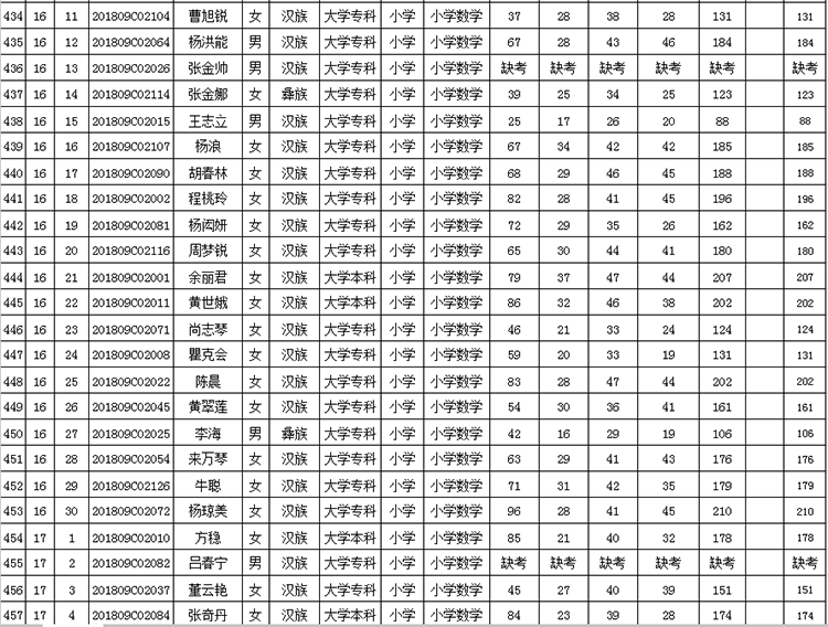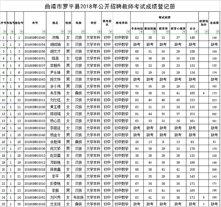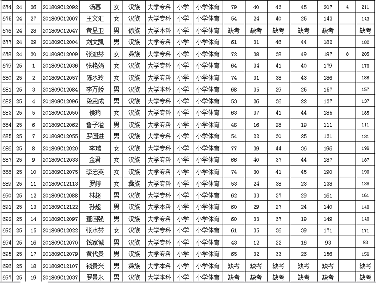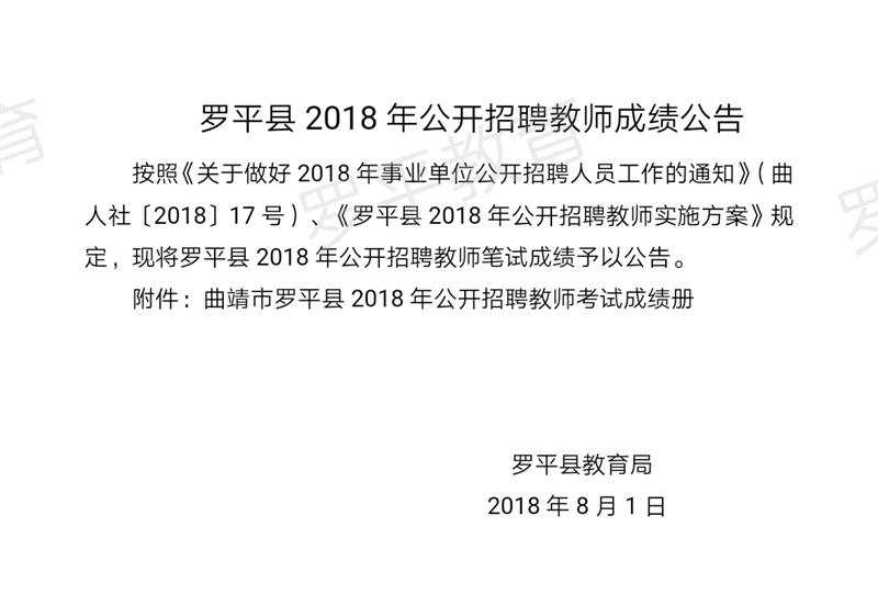 曲靖市羅平縣2018年公開招聘教師成績(jī)公告