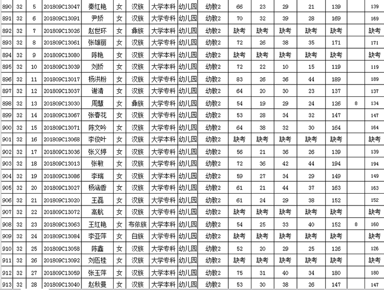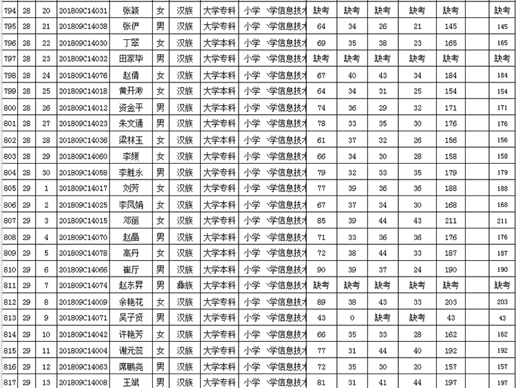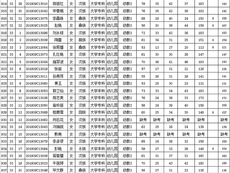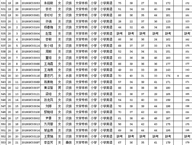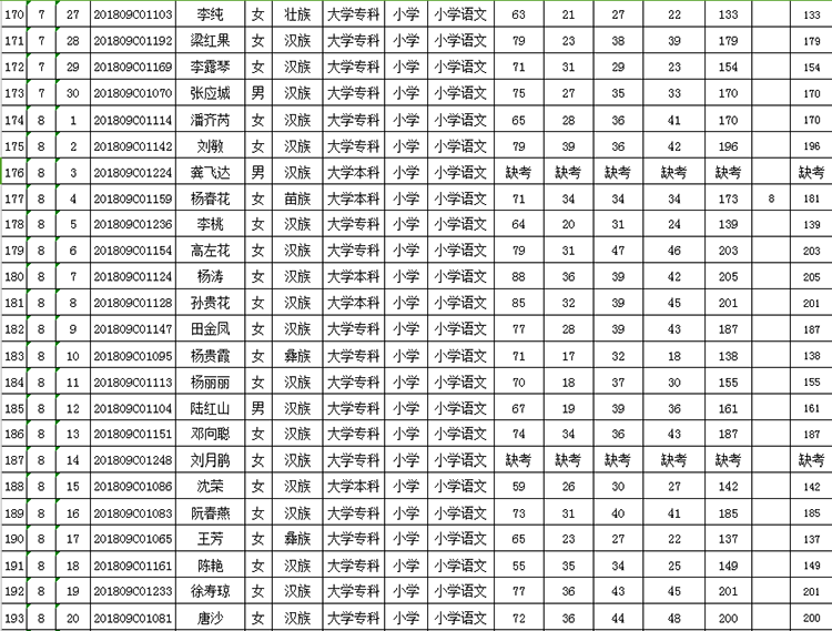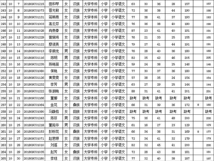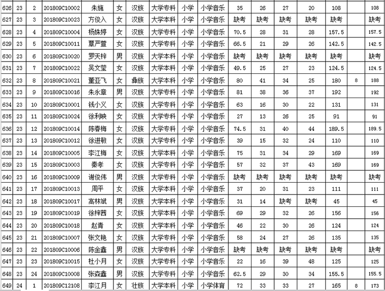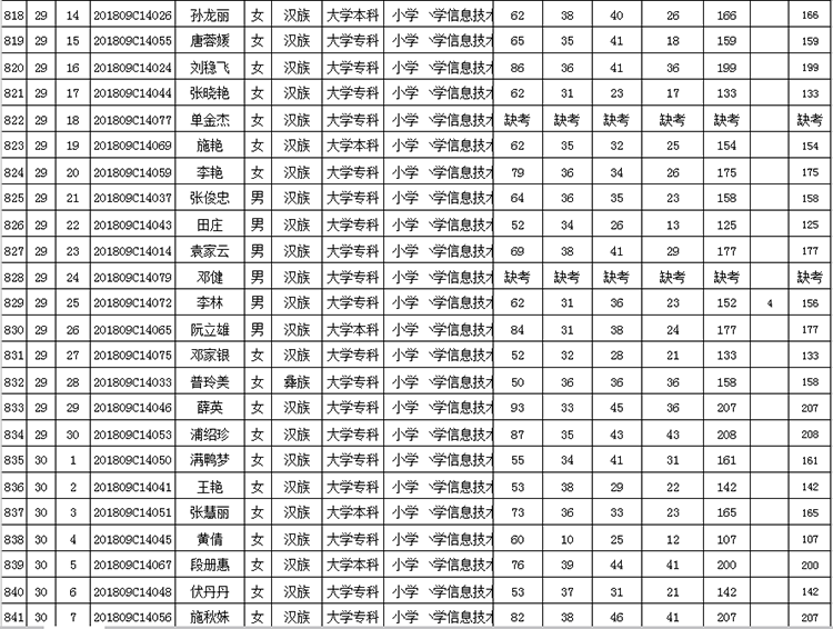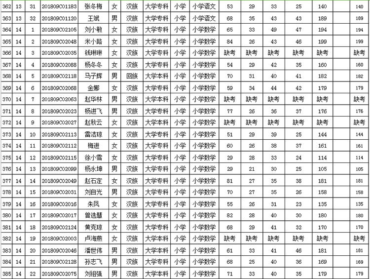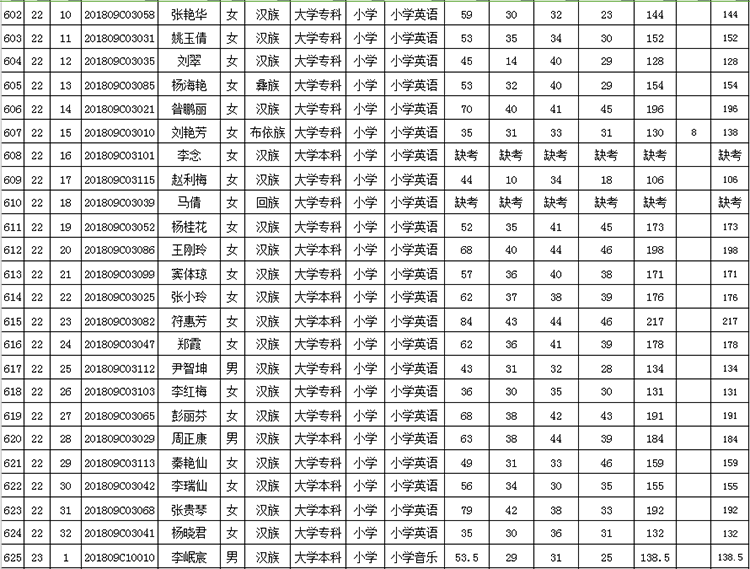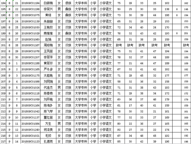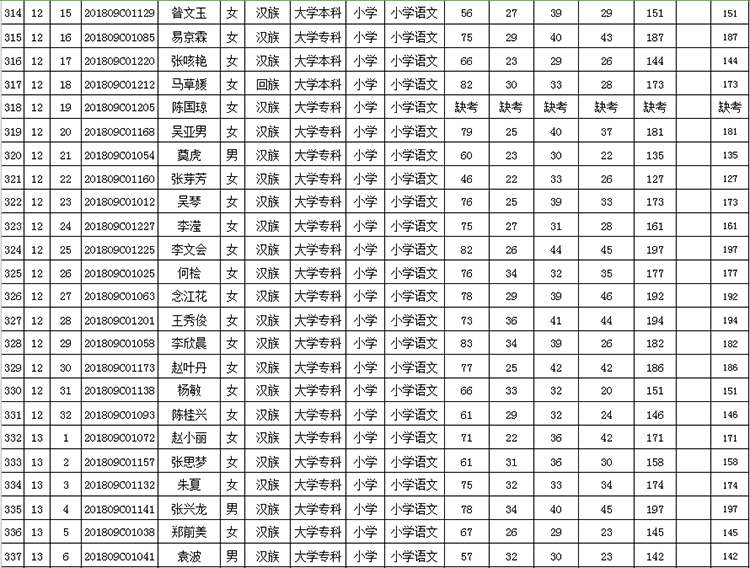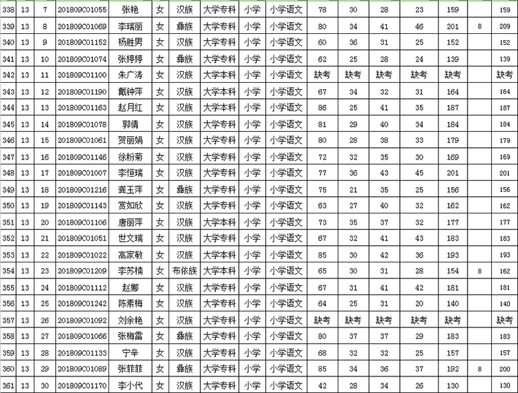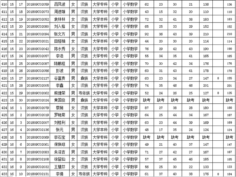 曲靖市羅平縣2018年公開招聘教師成績(jī)公告