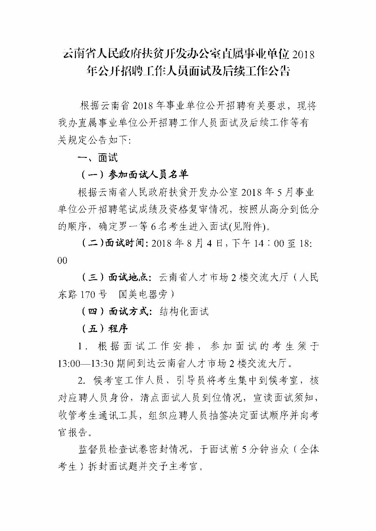 1、云南省人民政府扶貧開發(fā)辦公室直屬事業(yè)單位2018年公開招聘工作人員面試及后續(xù)工作公告.pdf