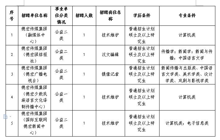 云南省德宏傳媒集團(tuán)2018年度招聘5名碩士研究生公告