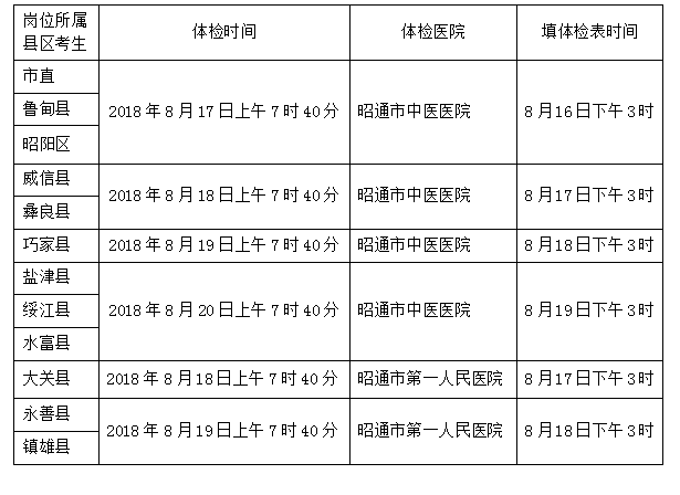 昭通市2018年事業(yè)單位公開招聘工作人員考生體檢通知