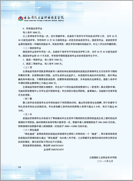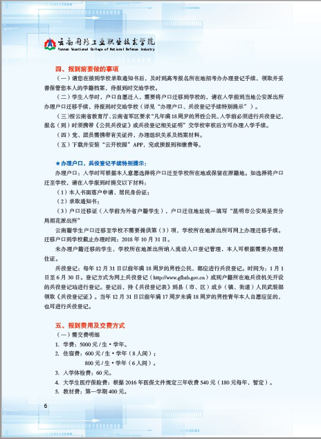 云南國防工業(yè)職業(yè)技術學院2018級高職學生入學須知