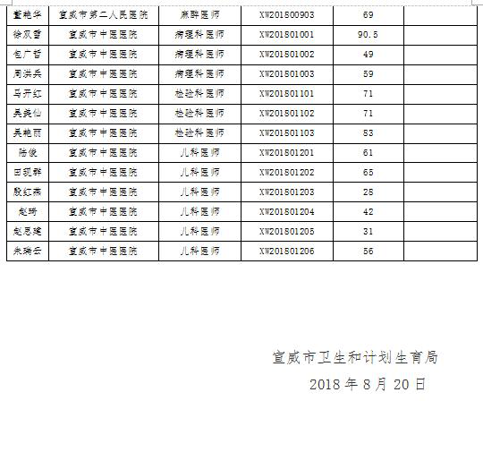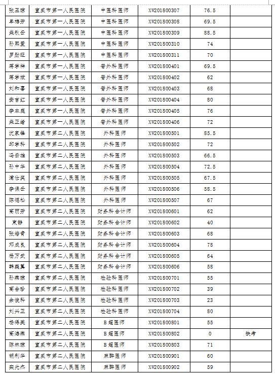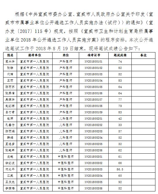 曲靖市宣威衛(wèi)計局所屬事業(yè)單位2018年遴選筆試成績公告