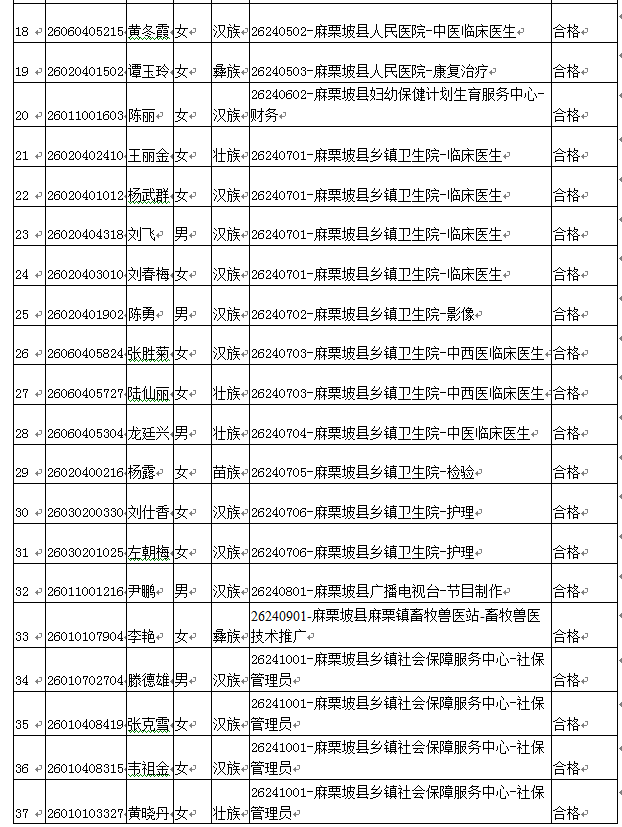 2018年麻栗坡縣事業(yè)單位公開招聘工作人員考察結(jié)果