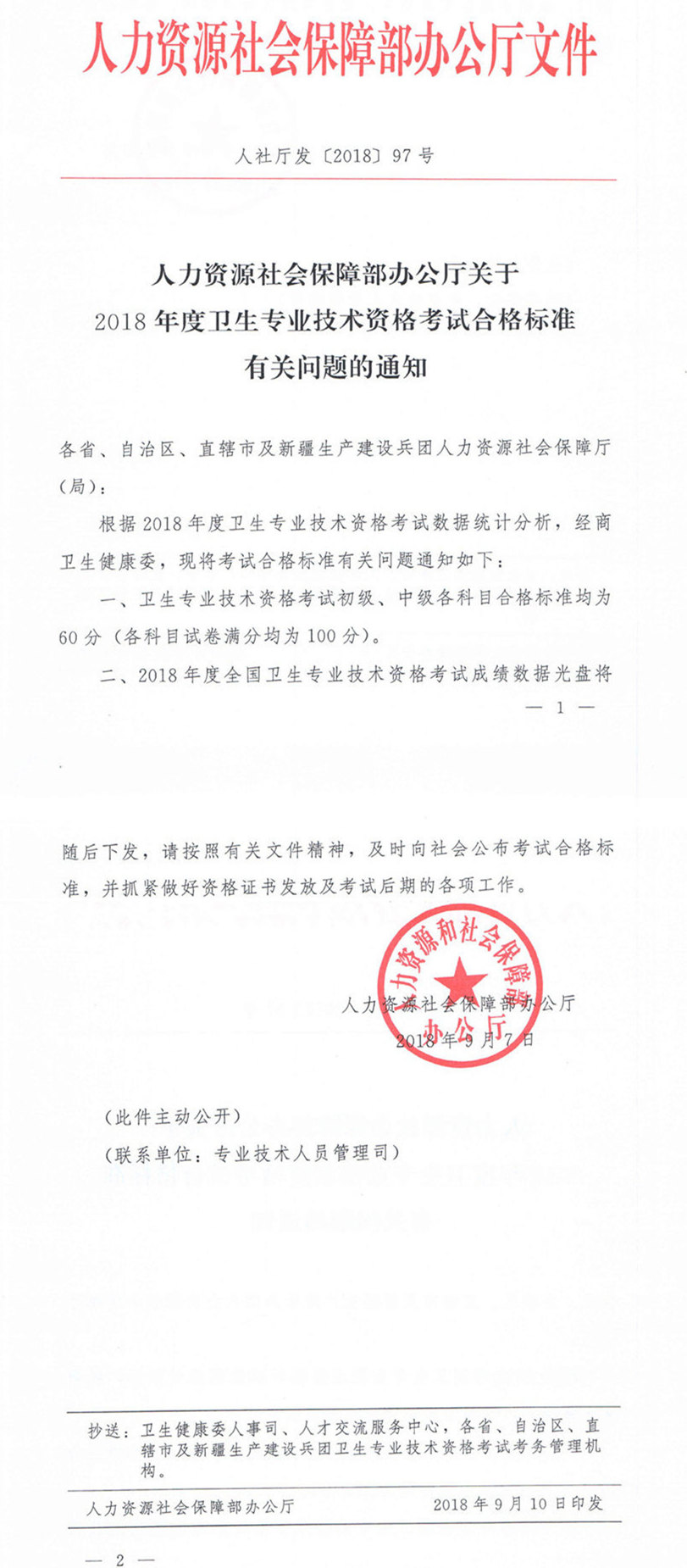 關(guān)于2018年衛(wèi)生專業(yè)技術(shù)資格考試合格標(biāo)準(zhǔn)有關(guān)問題的通知