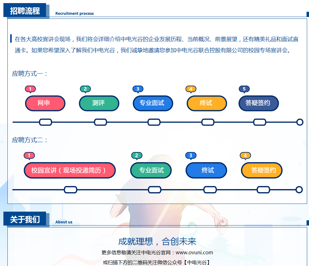 基本要求:本科以上學(xué)歷,CET-4及以上,認同中電光谷企業(yè)文化 ,身體健康、積極進取、樂觀誠信、責(zé)任心強 、良好的溝通、組織協(xié)調(diào)能力,具備團隊合作精神