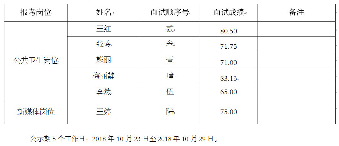 云南省健康教育所2018年公開招聘編制外工作人員面試成績(jī)公示