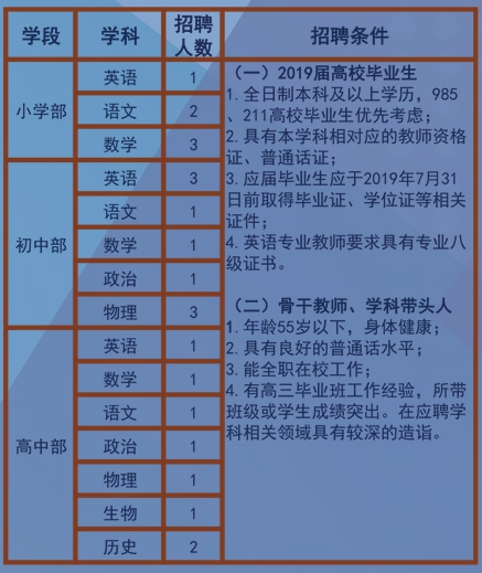 2019屆優(yōu)秀高校畢業(yè)生、骨干教師、學(xué)科帶頭人。