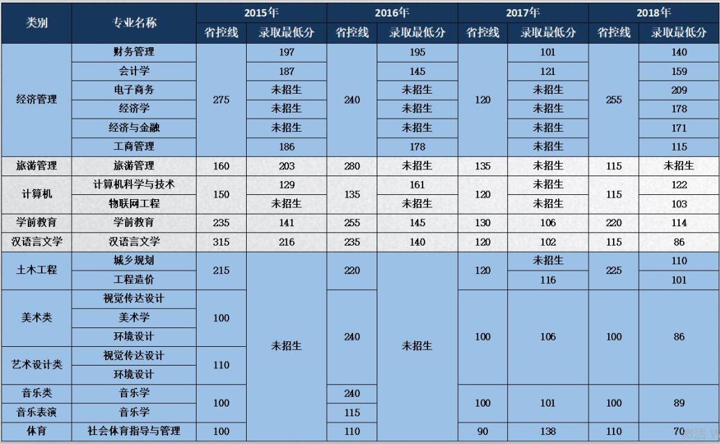 商學(xué)院2015-2018年專升本錄取最低分
