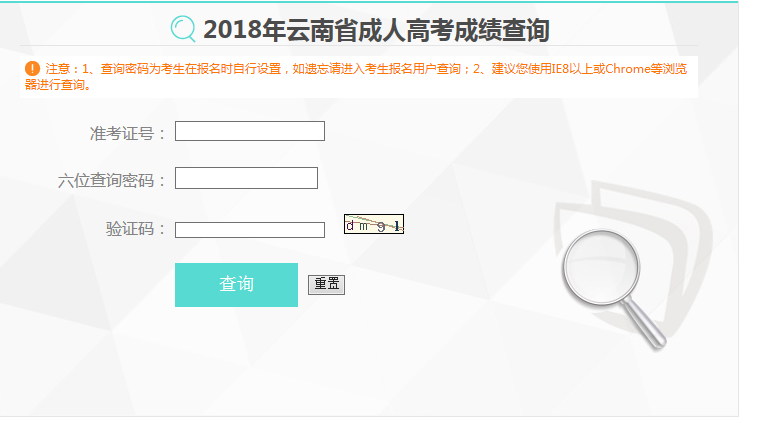 2018年云南省成人高考成績(jī)查詢?nèi)肟?/h1>