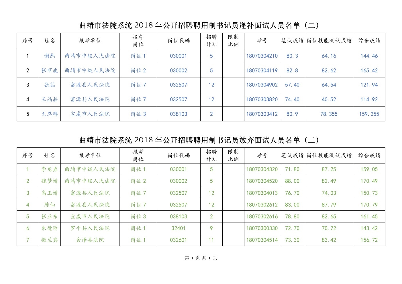 曲靖市法院系統(tǒng)2018年公開招聘聘用制書記員遞補(bǔ)面試人員名單